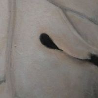 Fig leaf created 1857 for cast of Michelangelo's statue David in Victoria and Albert Museum in London. Fig leaf was attached to statue with hooks when Queen Victoria came to visit. The leaf depicted is life-size.